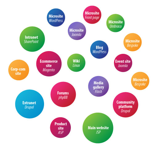 Most of these sites are vastly different in terms of scale, functionality, complexity and longevity. Some sites are under continuous development while other sites are only around for a couple of weeks or months. Some of the websites are owned by the company's IT department and hosted internally, while other websites may be owned by their marketing department and hosted externally. As a result, the level of investment and the time to market requirements are usually very different.