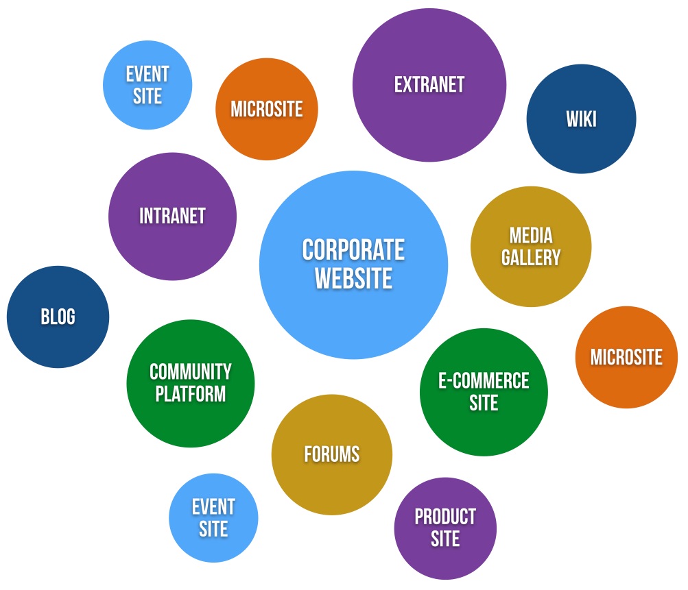 Most larger organizations run many different types of websites. It's not unusual for a small organization to have ten websites and for a large organization to have hundreds of websites. Some of Acquia's largest customers operate thousands of websites.